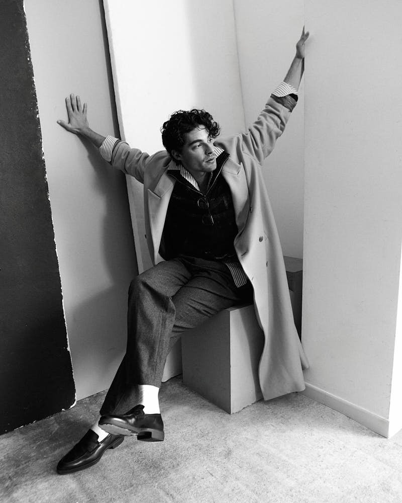 Vittorio wears a coat by THE FRANKIE SHOP, a shirt by WOOD WOOD, pants by PHYSIQUE DU ROLE, and shoes by CHURCH’S